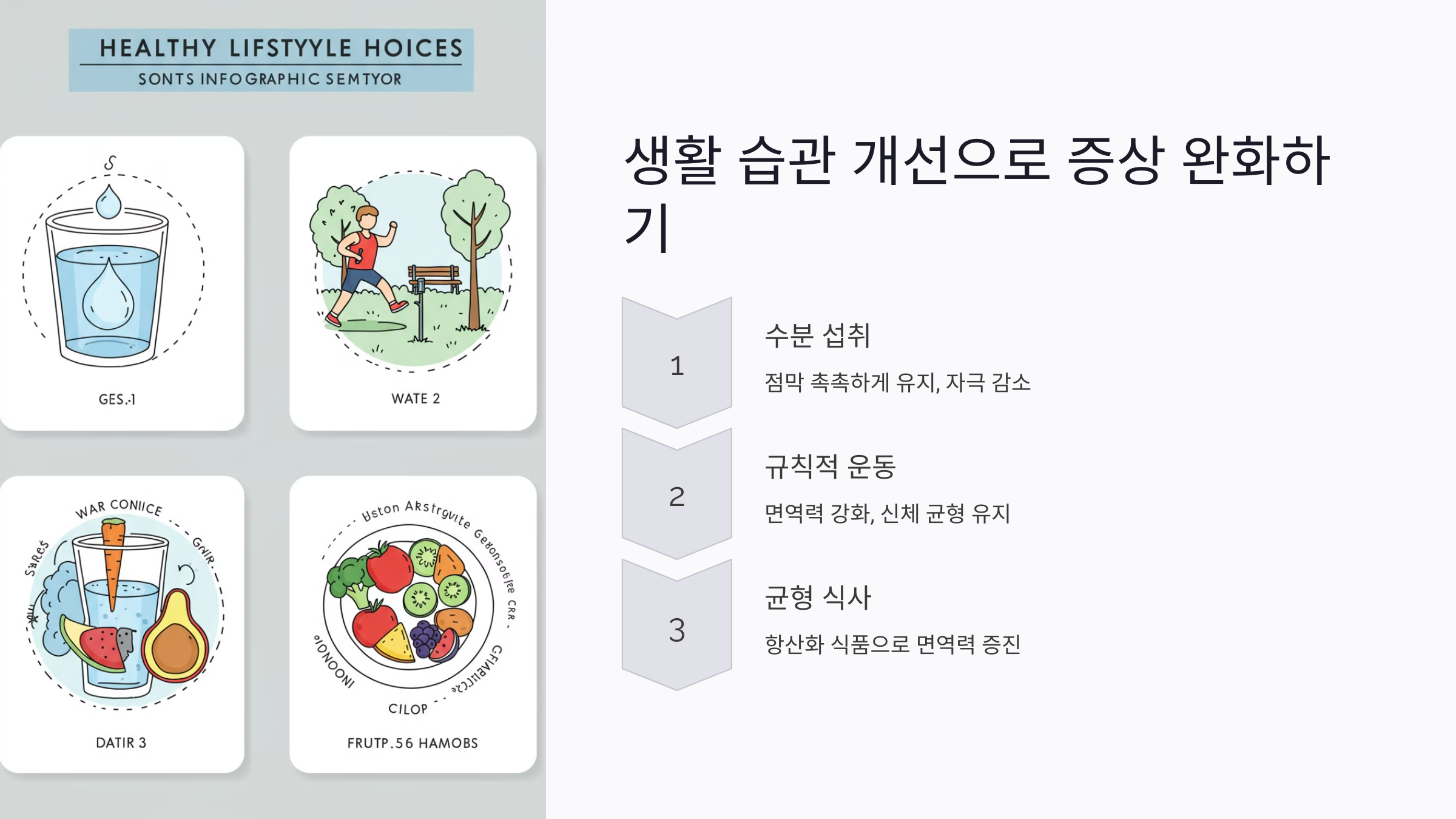 - 규칙적인 운동: 면역력을 강화하고 신체 균형을 유지하는 데 도움이 됩니다.